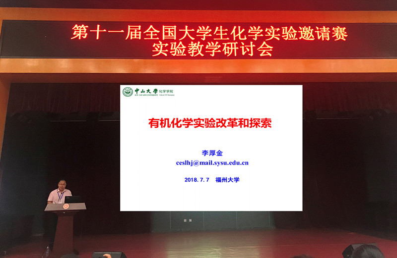 实验邀请赛期间,还举行了为期两天的“全国大学化学实验教学研讨会”,有来自全国各地50余所高校的200多名大学化学实验教师代表参会。会上,各校教师就实验教学研究与改革、学生实践能力和创新意识培养、实验教学队伍建设和管理等方面进行了交流与探讨。我院化学实验教学中心副主任李厚金副教授应邀做了题为“有机化学实验的改革和探索”的大会报告。在报告中,李厚金副教授回顾了近一百多年来国际有机化学实验的发展历程与成就,分析了当前大学有机化学实验教学改革的源动力,介绍了我院有机化学实验教学内容、教学方法、教学模式等方面进行的改革与探索实践、以及创新人才培养的成效,提出了未来有机化学实验教学改革的方向和途径。报告内容古今中外、旁征博引、图文并茂,讲解幽默风趣,受到与会同行的好评和热烈反响。