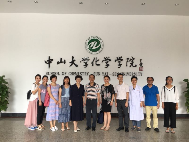 2018年9月13日上午,广东第二师范学院化学系主任张秀莲教师、书记刘文章、设备处关见留老师一行8人来我实验教学中心参观交流。实验中心副主任许先芳老师、基础化学实验室主任赖瑢老师以及各实验室实验员等进行了热情接待。