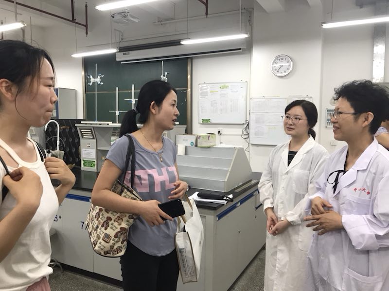 来访嘉宾先后参观了无机化学、分析化学,有机化学和物理化学实验室,就实验室建设、日常运行情况、开放管理等问题与各实验室的老师进行了细致交流。