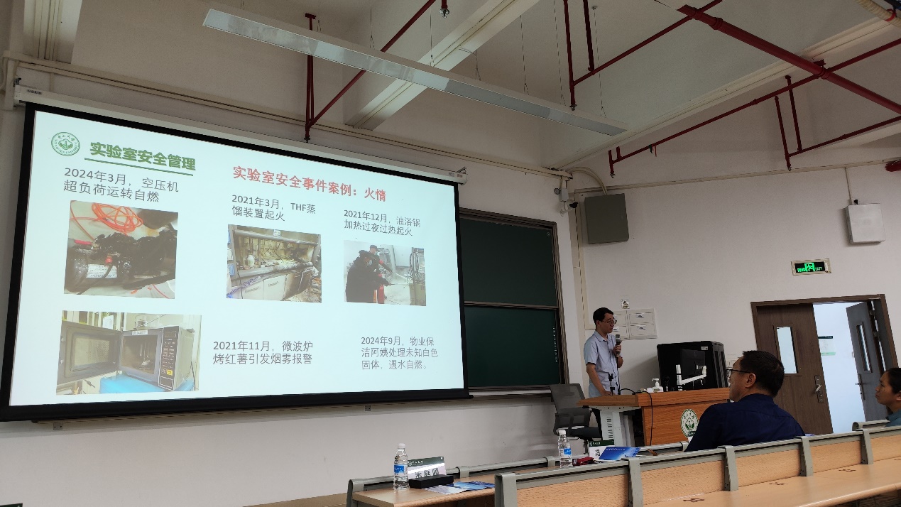 随后,院长助理朱庭顺教授为同学们带来一场系统而严谨的实验室安全培训。他结合真实案例,生动阐释安全规范的重要性,并与现场同学积极互动,让大家在交流中深化安全第一的实验意识。