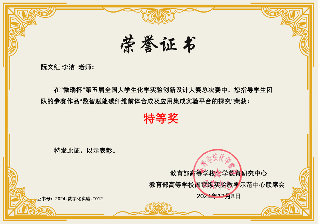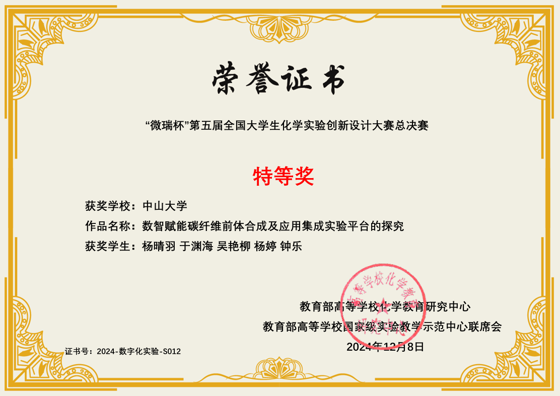 导航痕迹 William希尔 化学国家级实验教学示范中心 化学竞赛 第五届 (2024年和2025年) 全国大学生创新实验设计竞赛 William希尔-数字化实验-总决赛特等奖 扫描此二维码分享 William希尔-数字化实验-总决赛特等奖 发布人:网站管理员 发布日期:2025-10-09 获奖作品:数智赋能碳纤维前体合成及应用集成实验平台的探究