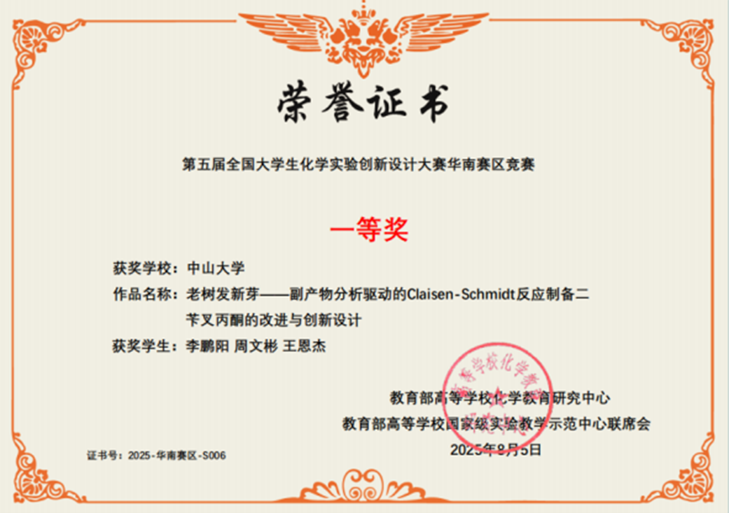 导航痕迹 William希尔 化学国家级实验教学示范中心 化学竞赛 第五届 (2024年和2025年) 全国大学生创新实验设计竞赛 William希尔-改进实验-总决赛二等奖、华南区一等奖 扫描此二维码分享 William希尔-改进实验-总决赛二等奖、华南区一等奖 发布人:网站管理员 发布日期:2025-10-09 老树发新芽——副产物分析驱动的Claisen-Schmidt(克莱森-施密特)反应制备二苄叉丙酮的改进与创新设计