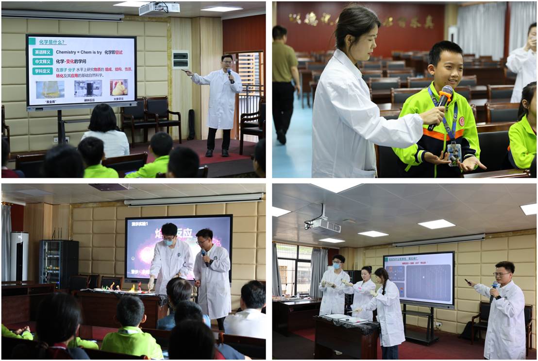 在热烈的掌声中,首场科普活动拉开帷幕。杨煌盛老师以客家酿豆腐、驱虫剂、青蒿素和稀土资源等为例,生动讲解生活中的化学。随后,臧真明、肖华和胡昌佳老师展示了焰色反应和尼龙制备实验。五色火焰与源源不断的尼龙丝依次呈现,一幕幕神奇景象令同学们惊叹不已。