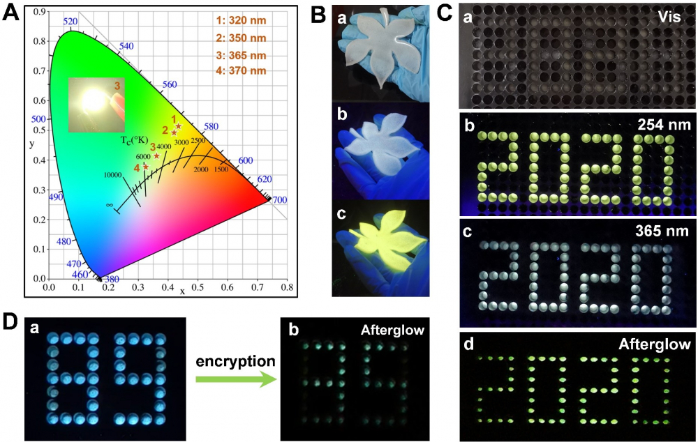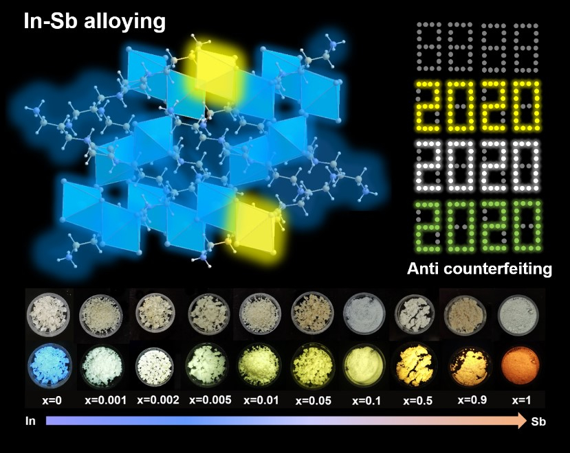 图2. BAPPIn2-2xSb2xCl10系列单晶的固态照明以及防伪应用