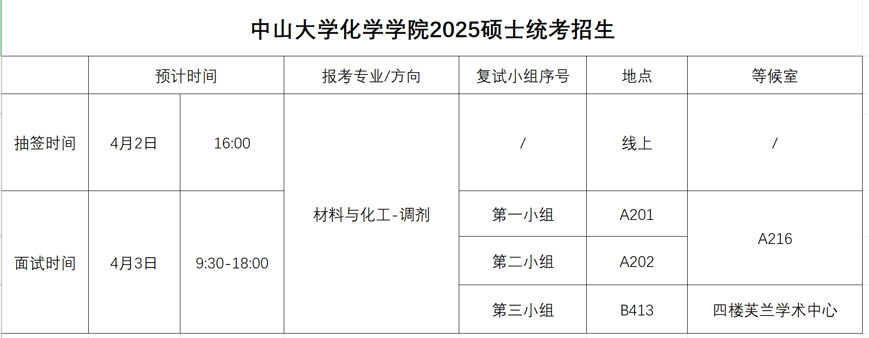 3.如有准备PPT,请在4月2日17点前提交到邮箱chemgraduate@mail.sysu.edu.cn(最好提交PDF,防止格式出现问题),命名为“调剂+考生姓名+编号”,逾期不接受补交或更换。