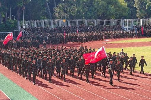 同学们在参加队列训练