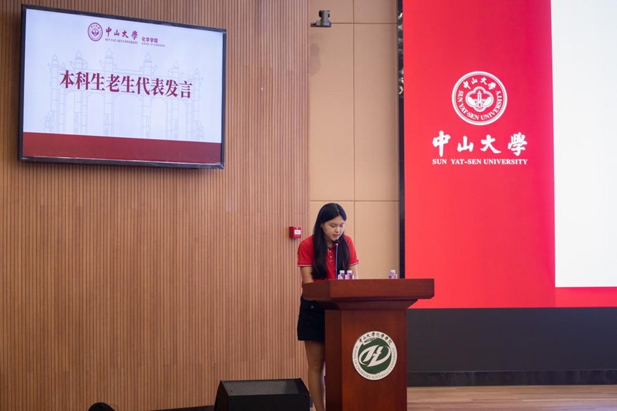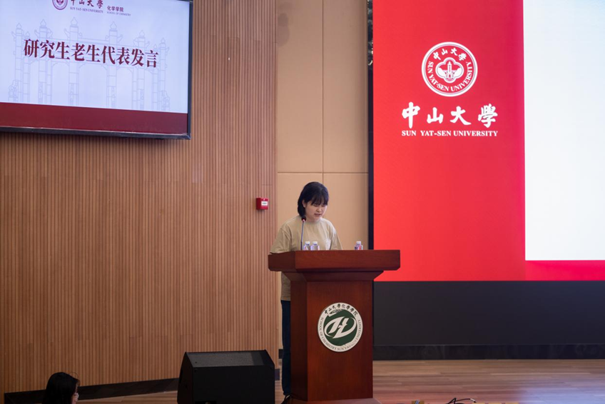 随后,研究生老生代表童琳净同学分享了自己在williamhill中国的学习科研经验,鼓励新生勇于探索、不怕困难、虚心求教,保持对化学的热爱与追求。