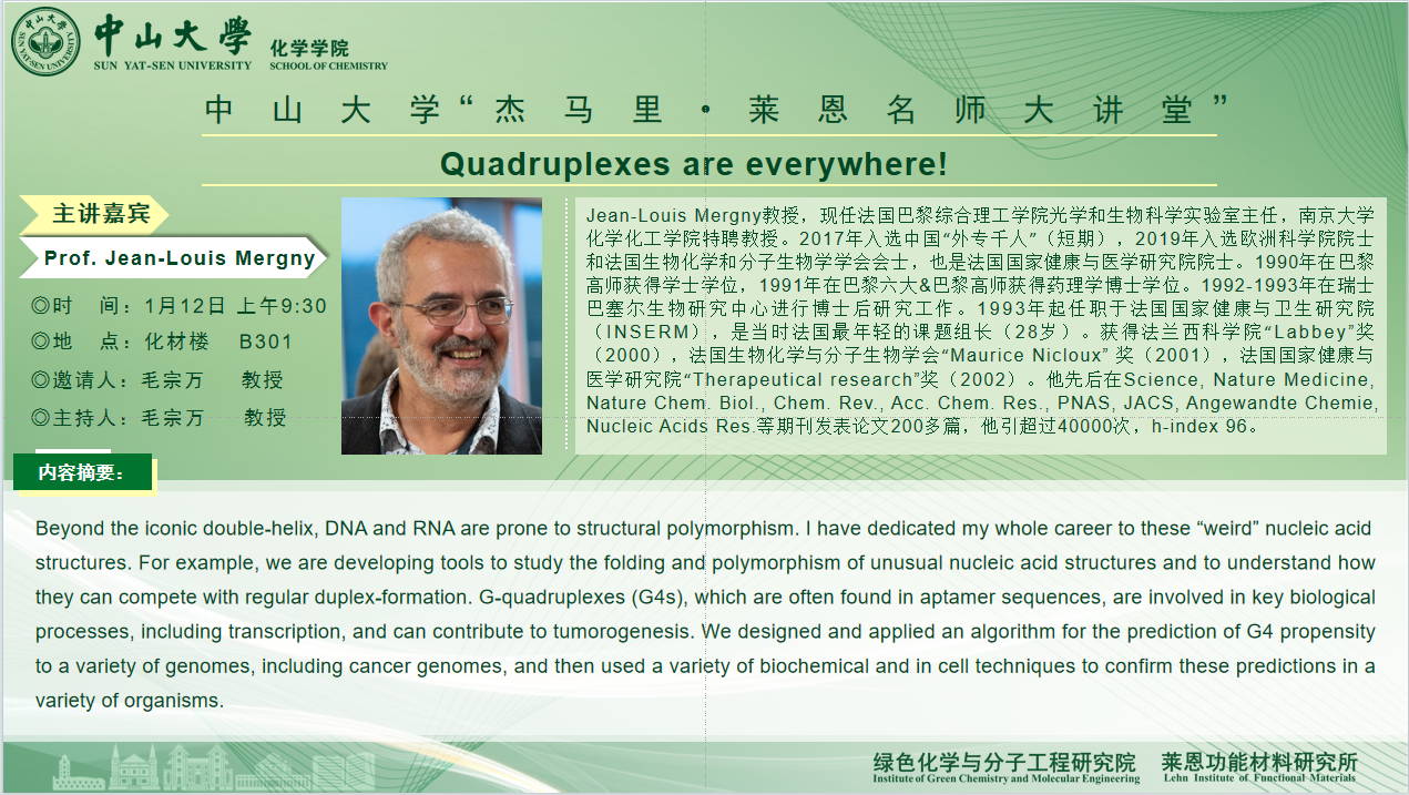 导航痕迹 首页 科学研究 学术报告 2026年1月12日讲座论坛:Quadruplexes are everywhere! 2026年1月12日讲座论坛:Quadruplexes are everywhere! 发布日期:2026-01-08