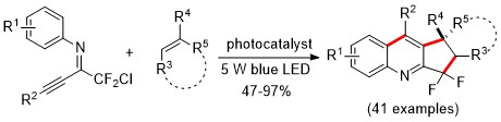 Synthesis of Gem-Difluorinated Fused Quinolines via Visible Light-Mediated Cascade Radical Cyclization.