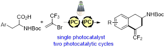 Synthesis of 3-Amino-1-(difluoromethylidene)tetralins via Relay Photocatalytic Cascade Reactions of Arylalanines and 2-Bromo-3,3,3-trifluoropropene.